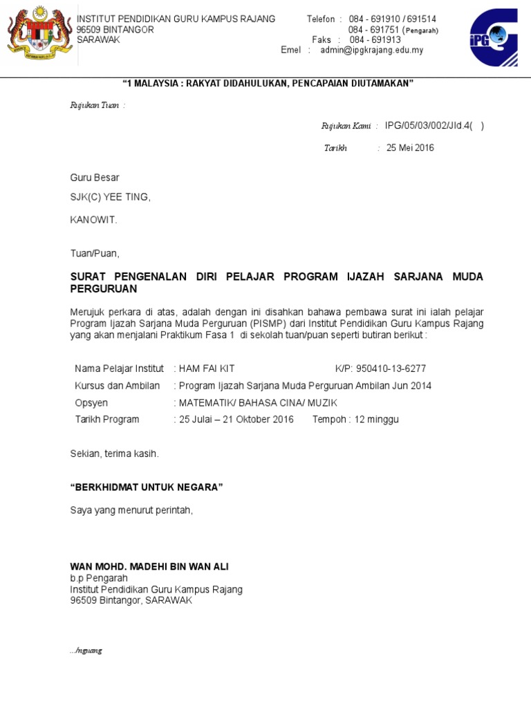 Doc Surat Pengenalan Diri Pelajar Internship Cikgu Mor Academia Edu